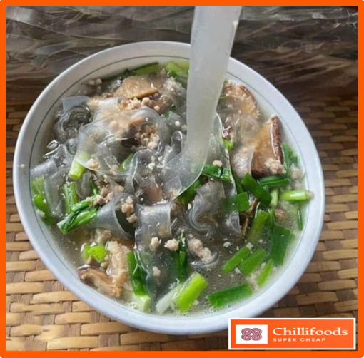 Miến nước: Nấu cùng nước dùng gà, bò hoặc xương hầm, thêm rau xanh và gia vị để tạo ra món canh miến nóng hổi, bổ dưỡng.